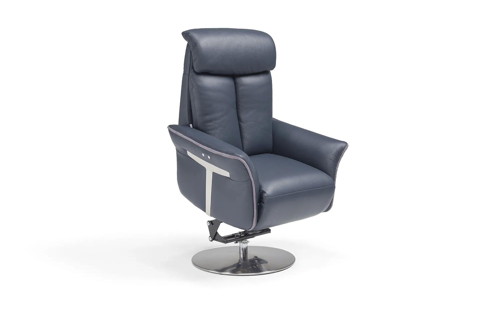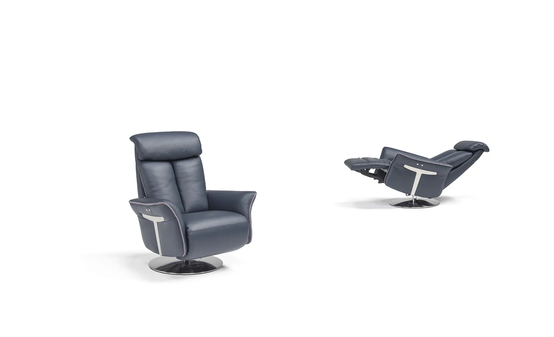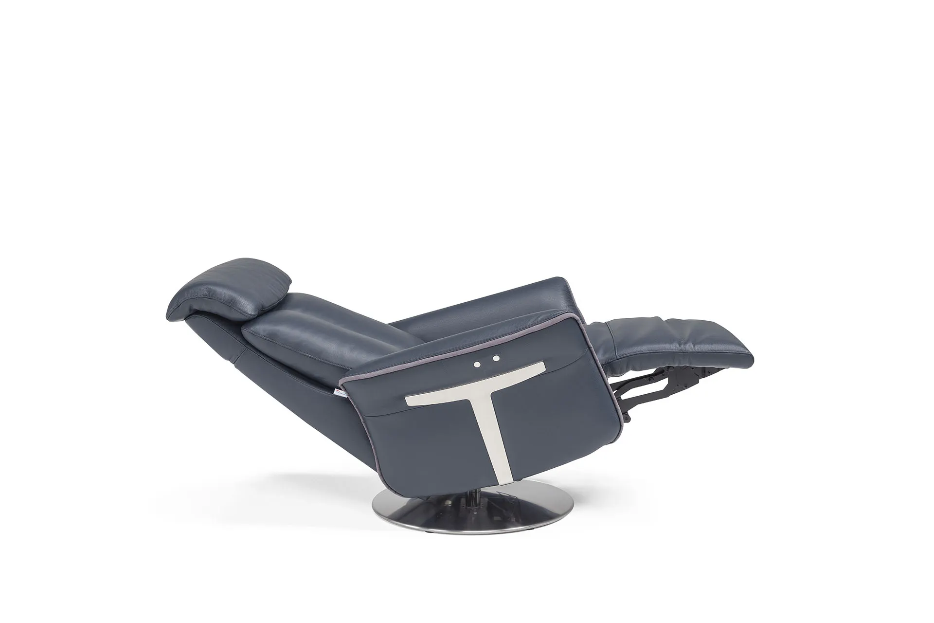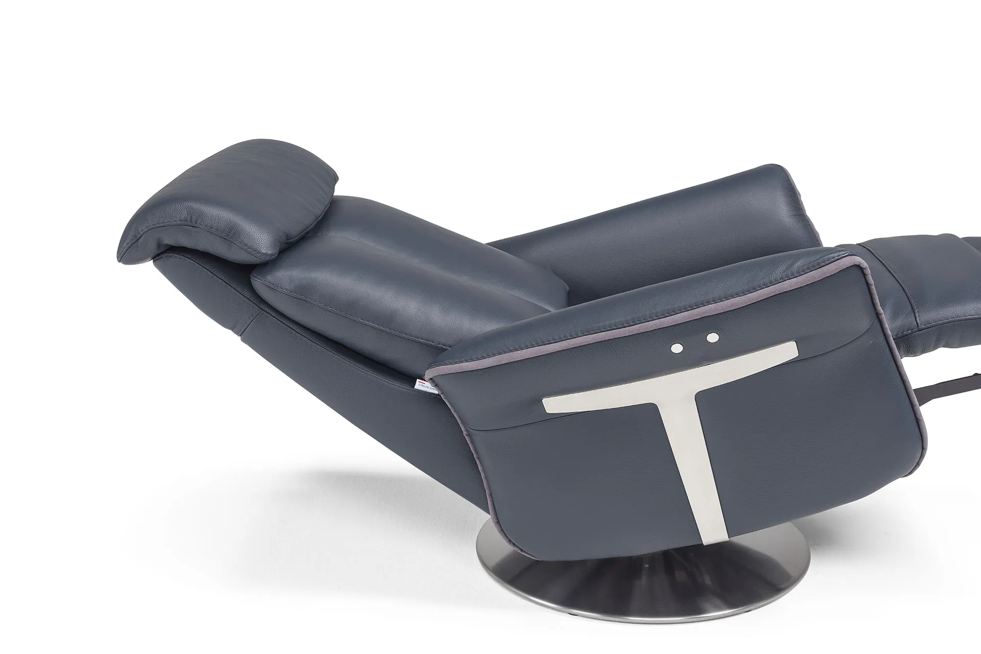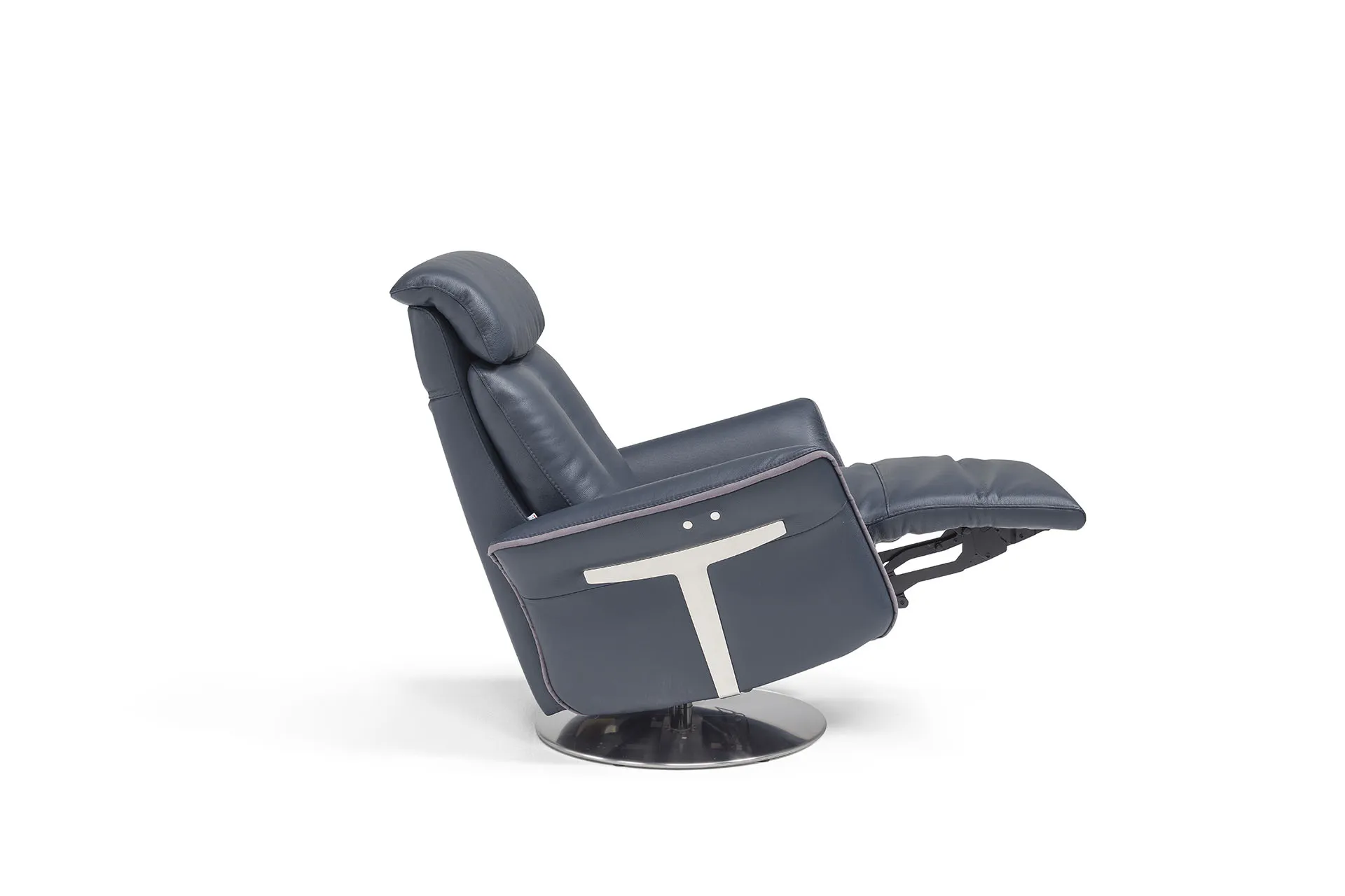 La base in metallo a disco, dal design pulito e solido, si integra con eleganza nelle ambientazioni più raffinate, rendendo la poltrona relax Minerva un elemento di stile oltre che di funzione.